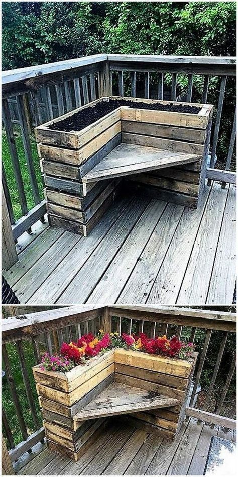Соберите стеллаж из деревянных ящиков, и у вас получится целый новый дом для любимых цветов. Комбинируйте разные по срокам цветения растения, чтобы клумба была постоянно цветущей.