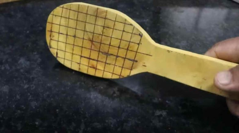 Первым делом на рабочей части деревянной лопатки с помощью линейки и карандаша необходимо будет сделать разметку в виде сетки.