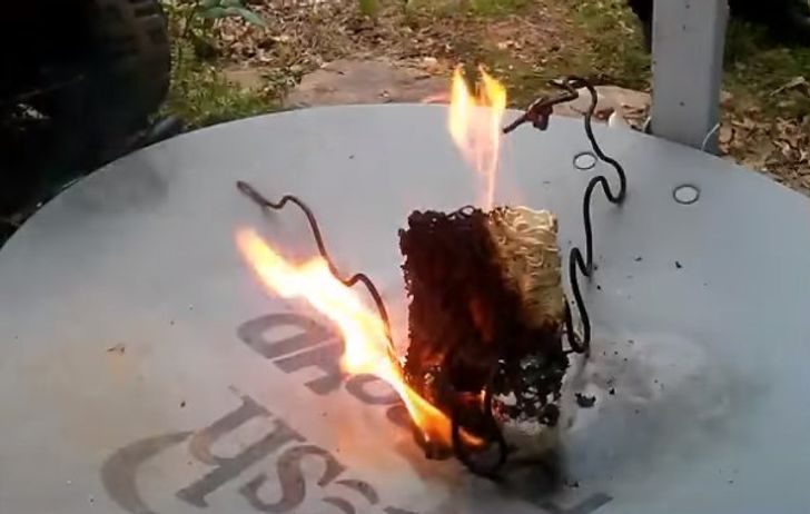 Лапша быстрого приготовления — не только легкий и калорийный продукт, но еще и неплохое топливо. Если пропитать брикет лапши чем-то горючим, например спиртом или антифризом, то он будет гореть примерно по 20 минут с каждой стороны. Дело в том, что, впитав жидкость, лапша будет контролировать скорость испарения горючего.
