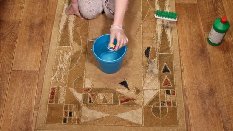 Когда весь ковёр будет очищен, наберите чистую воду и тряпкой или той же щёткой пройдитесь по всей поверхности ковра, чтобы удалить остатки мыла. Просушите и постелите свежий и чистый ковёр на прежнее место!