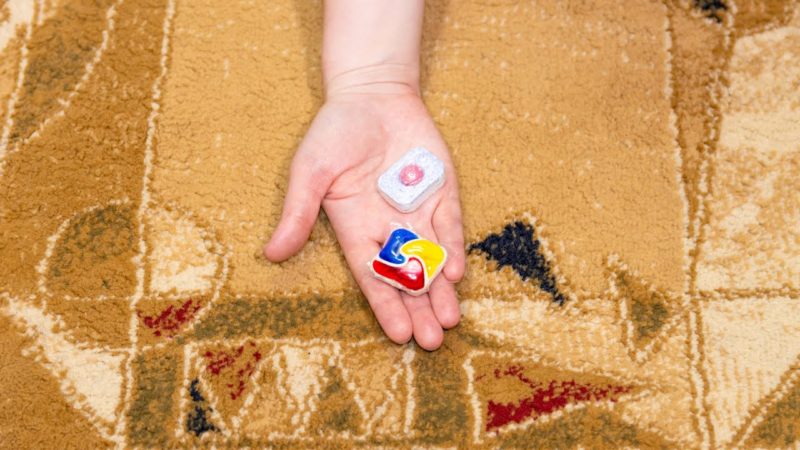 Подробнее о том, как почистить ковёр с помощью таблетки для посудомоечной машины, смотрите в видео ниже: