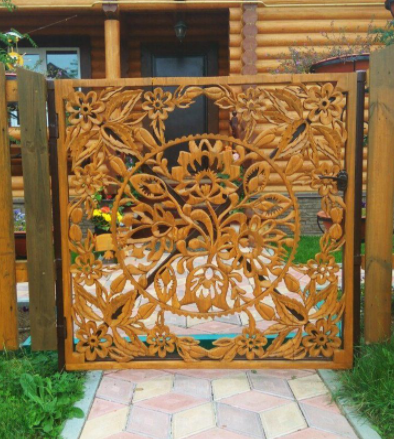 Резные деревянные калитки выглядят так, как будто пришли к нам из русской народной сказки. Ограждение получится индивидуальным и неповторимым.