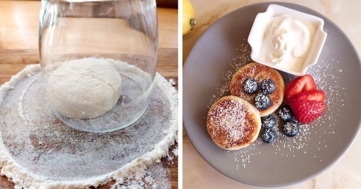 Идеально круглые сырники получаются при помощи стакана