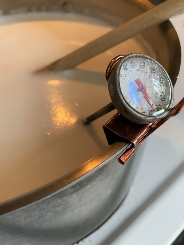 Иногда необходимо контролировать температуру жидкости при готовке, а термометр держать неудобно. Его можно закрепить на кастрюле при помощи канцелярского зажима.