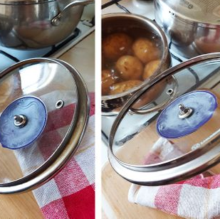 Во время готовки нам часто приходится снимать крышку с кастрюли, и в этот момент мы задаемся вопросом, куда бы и как ее пристроить. Если положить вниз ручкой — крышка перекатывается, вверх — конденсат или жир может испачкать рабочую поверхность. Положите крышку на ручку кастрюли, зацепив ее краем за кромку. Не бойтесь, конструкция будет устойчивой, даже если посуда пустая.