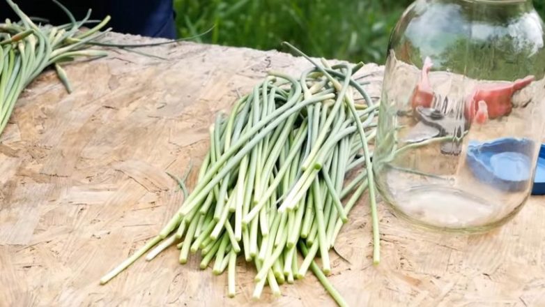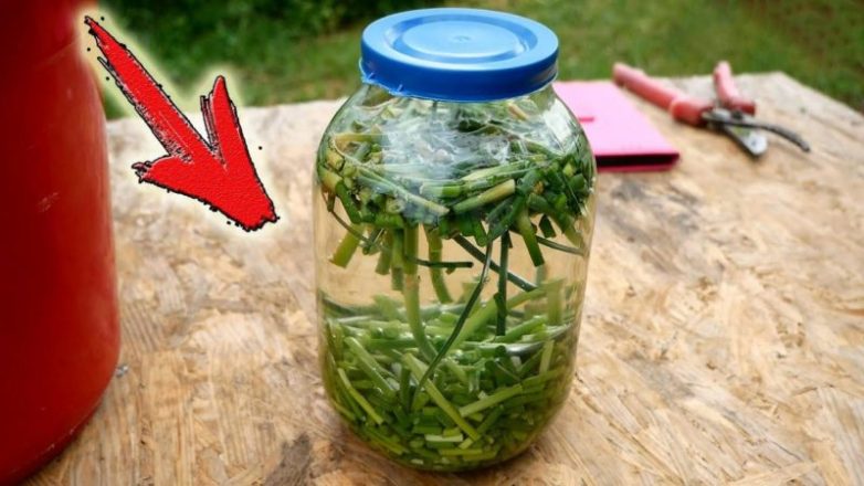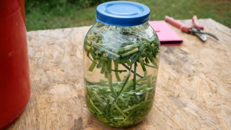 Для создания инсектицида (защита от муравьев и других насекомых) потребуется чуть больше времени. Делаем настой на чесночных стрелках: в 2 л банку нарезаем 400 г стрелок.