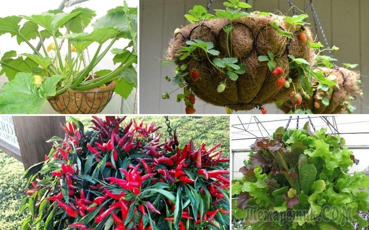 Наверняка вы знали, что в цветочных горшках можно выращивать разные съедобные растения. А как насчет того, чтобы посадить ягоды, зелень и овощи в подвесные кашпо, и тем самым не только устроить компактный мини-огород, но и украсить дачу?