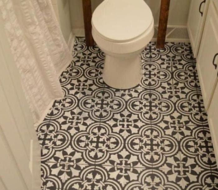 Плиточный или деревянный пол также легко обновить с помощью трафаретов.