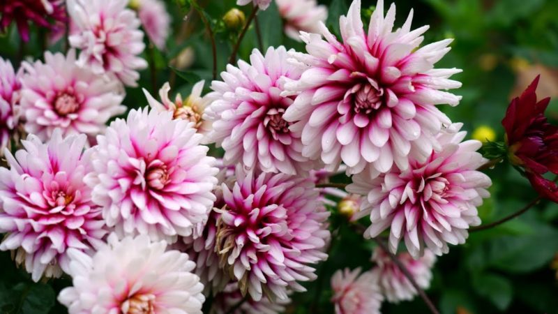 Георгины вегетативные разных сортов. Сейчас можно найти в магазинах компактные виды георгин, которые совсем низкие и полностью усыпаны мелкими красивыми цветами. Никакого особого ухода к себе не требуют — это цветок из серии «посадил и забыл». Тем не менее, растут георгины до заморозков.