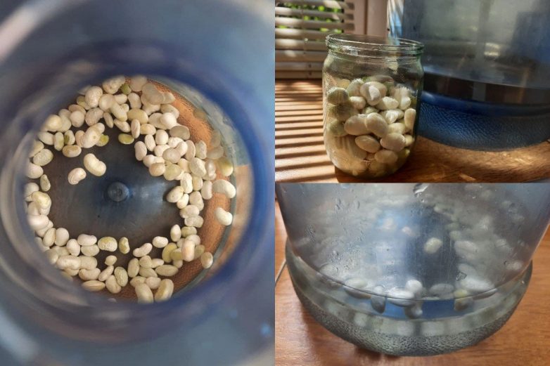 Налей в бутыль пару литров воды. Всыпь внутрь полбанки фасоли. Остается взбалтывать содержимое бутыли до тех пор, пока ее стенки не очистятся от зелени.
