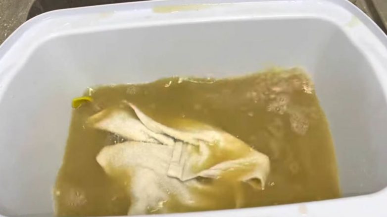 Каждое полотенце тщательно прополощите в растворе, но довольно быстро — не тратьте на одно полотенце больше 20 секунд.