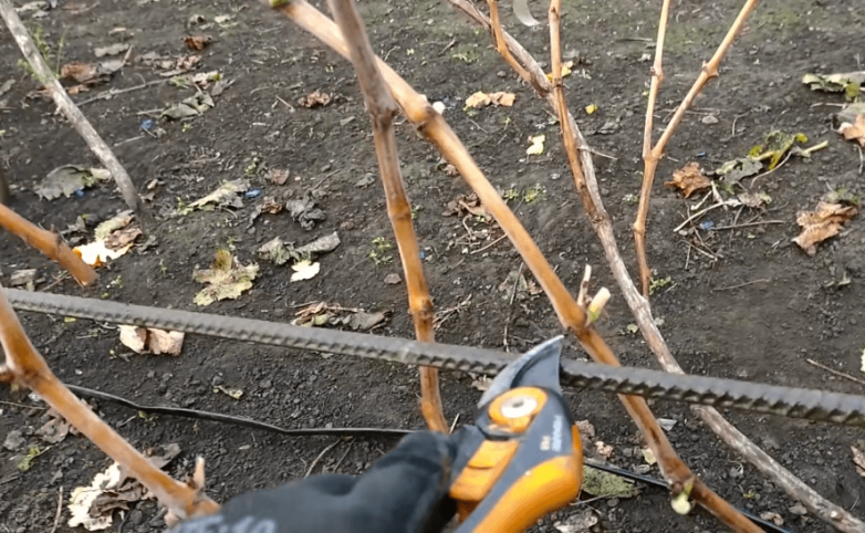 Здесь не придется формировать сучки замещения или учитывать расположение почек. Все гораздо проще и понятнее. В любом случае понадобится острый секатор. И придется подождать пока с отплодоносившего винограда не опадет основная масса листьев.