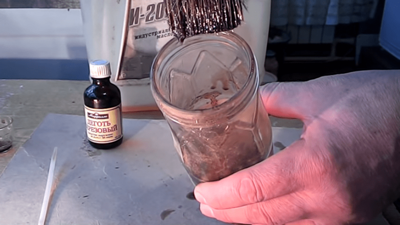 Имея в арсенале индустриальное масло, расход березового дегтя можно существенно сократить. В таком случае компоненты нужно тщательно перемешать. Ориентировочный расход: 1 флакон березового дегтя на 0,5 л масла.