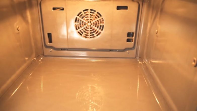Распределите пену ровным слоем по всей поверхности грязной духовки и оставьте на 15 минут.