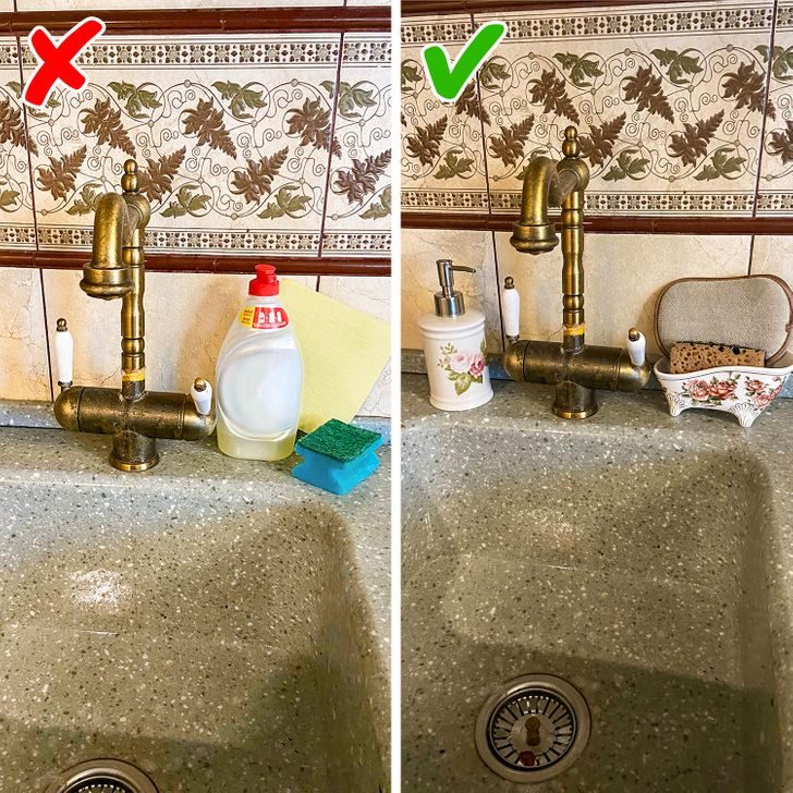 Помимо горшков и лотков, одноразовые вещи или предметы, которые необходимо постоянно заменять, тоже должны быть нейтральных цветов. Поэтому старайтесь выбирать щетки, губки, средства для мытья посуды неярких оттенков.