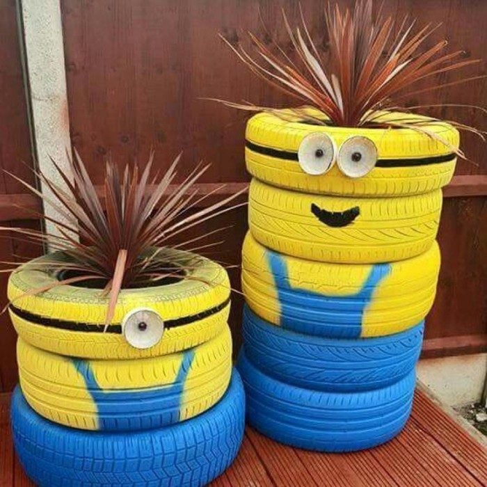 Яркие и оригинальные кашпо из старых покрышек, которые станут настоящей визитной карточкой.