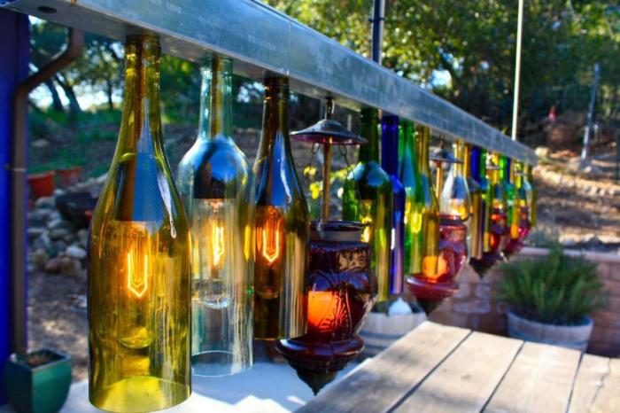 Садовые светильники своими руками из стеклянных бутылок — идеи для создания вечернего освещения на дачном участке.