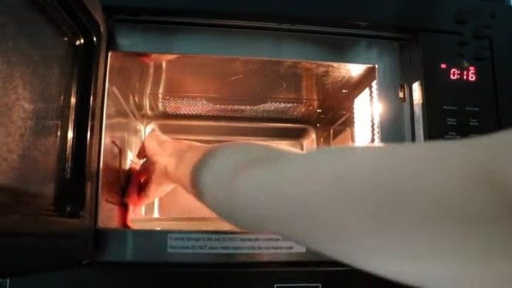 Отправляем пакет в микроволновку. Включаем её на 1 минуту, а затем ещё 4 раза на 30 секунд — всего получится 3 минуты. Однако сразу это время выставлять нельзя — пакет может лопнуть и расплавиться.