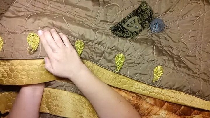 Сначала убираем старую застёжку: отпарываем пуговицы и аккуратно вручную зашиваем петли от пуговиц. Увеличивать куртку будем за счёт нахлёста, который был, когда куртка застёгивалась на обычные пуговицы. Сделаем так, чтобы планки легли встык и установим красивую декоративную застёжку клевант. Если вы хотите упростить задачу, то можете купить набор готовых застёжек, если же хочется сэкономить, то сделайте их самостоятельно. В сети есть много вариантов, как их сплести.