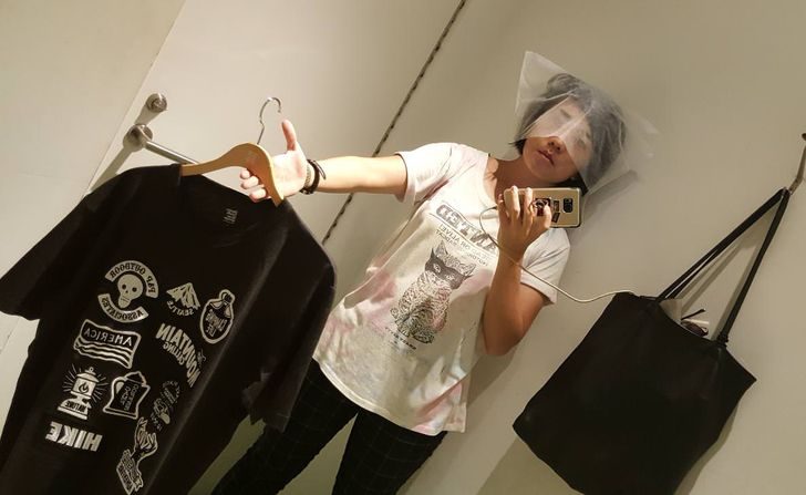 Мы привыкли, что во время примерки обуви в магазине дают подследники, чтобы не мерить обувь на голую ногу. Японцы в плане гигиены во время похода по магазинам ушли еще дальше. Чтобы примерить одежду в магазине, нужно надеть на голову такую штуку — специальную маску. Кстати, если задуматься, такой подход имеет смысл. Ведь с его помощью можно избежать следов от косметики, которые часто остаются на водолазках и свитерах в магазинах.
