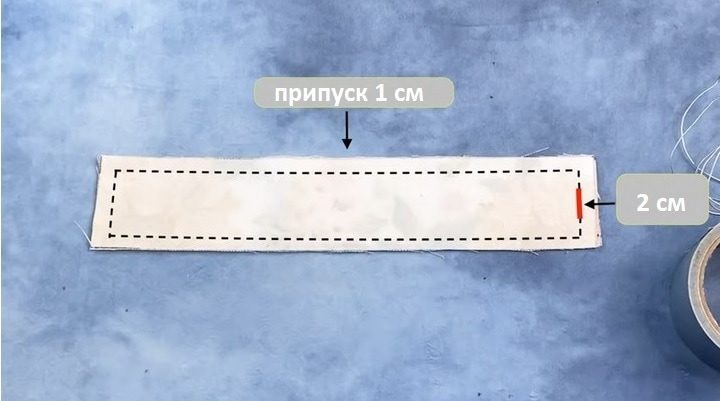 Выверните заготовку, отгладьте и проложите по кругу шов, отступив от края 2 см. Через не зашитое отверстие вдёрните резинку. (Длина 50 см, ширина 1 см). Сшейте вместе концы резинки, отверстие застрочите в край или зашейте вручную.