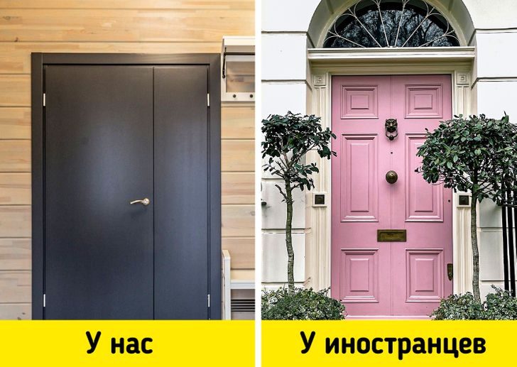 У нас в России мы не можем себе представить другую входную или подъездную дверь, кроме как железную и со множеством замков. Потому что мы хотим быть полностью уверенными в своей безопасности. В Европе же двери выглядят менее серьезно. Часто они сделаны из дерева или пластика. Нередко такие двери бывают прозрачными или с окошками.