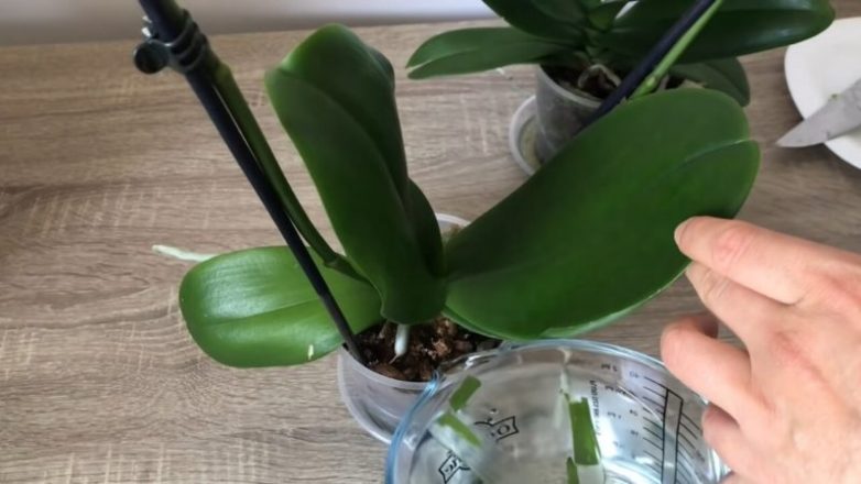 На следующий день полейте орхидеи водой с экстрактом алоэ аккуратно сбоку. Поливать таким раствором желательно 1 раз в 2 недели или хотя бы 1 раз в месяц. Алоэ вера содержит весь набор питательных элементов, необходимых орхидее для обильного цветения и наращивания корней.