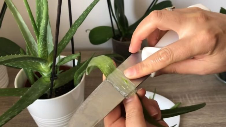 Для подкормки сразу нескольких орхидей возьмите 1 лист взрослого алоэ вера. Срежьте кожицу и выньте гелеобразную основу.