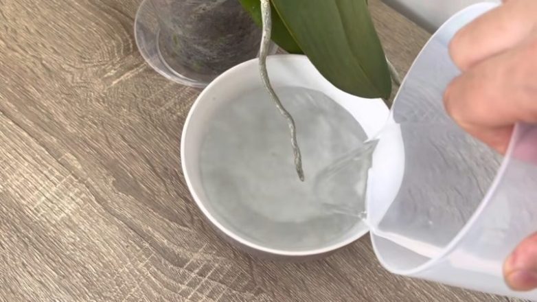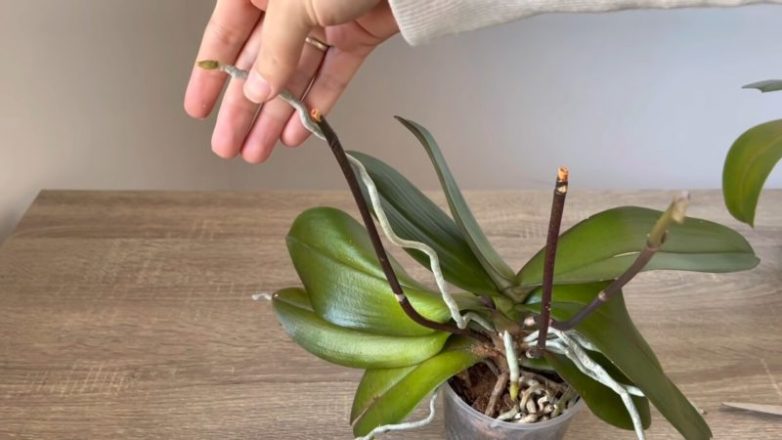 Если же у вашей орхидеи воздушные корни не сухие, но просто белые, без зелёного кончика, то это также нужно исправить. Отсутствие зелёного конца воздушных корней говорит о том, что в помещении недостаточно влажно. Концами поместите воздушные корни в воду и оставьте, пока вода сама не испарится со временем. Таким образом, вы обеспечите орхидее столь необходимую влажность. Именно благодаря этому небольшому трюку орхидея почувствует себя комфортно и начнёт активно наращивать цветоносы и выпускать цветы!