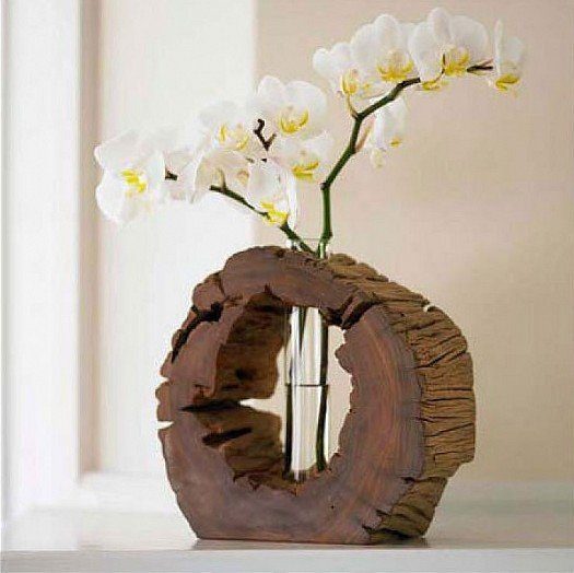Купите для себя красивую вазу. Привычные стеклянные смотрятся слишком просто, поэтому возьмите на заметку оригинальные конструкции из дерева или металла.