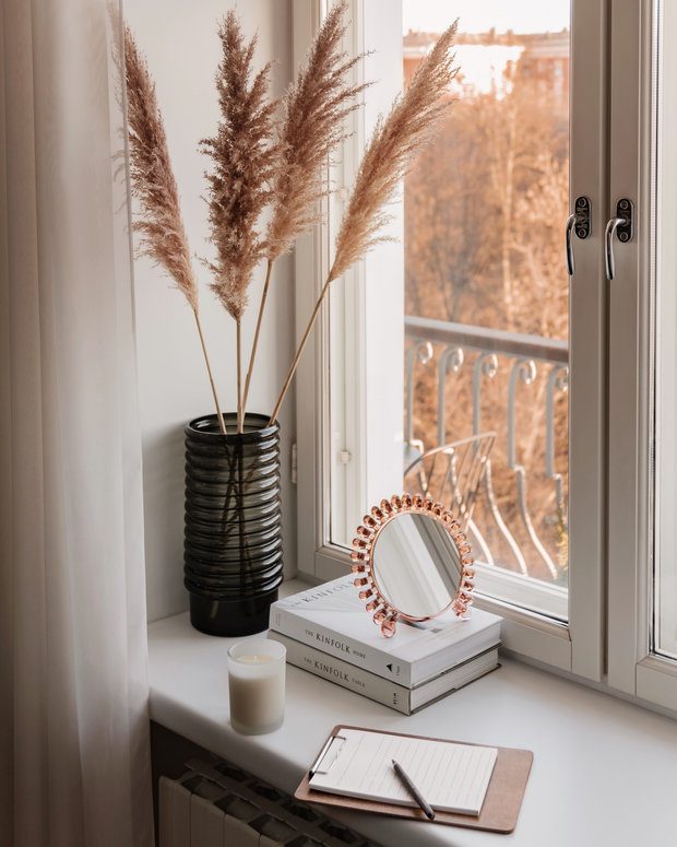 Домашние растения требуют постоянно ухода, срезанные цветы долго не стоят, поэтому предлагаем вам выбрать самый простой вариант – сухие растения. Они выглядят очень стильно в интерьере и не доставляют хлопот.