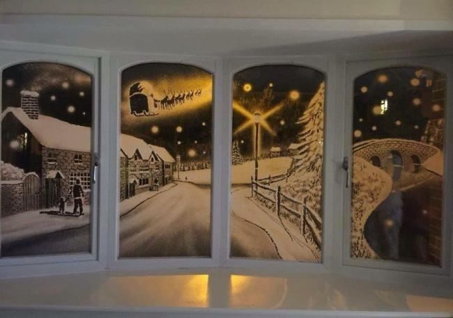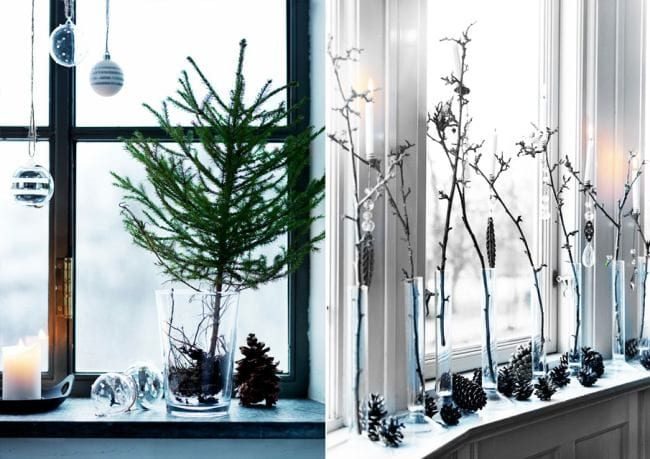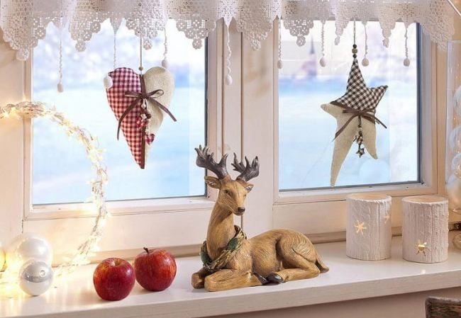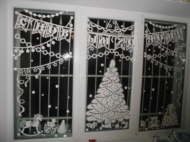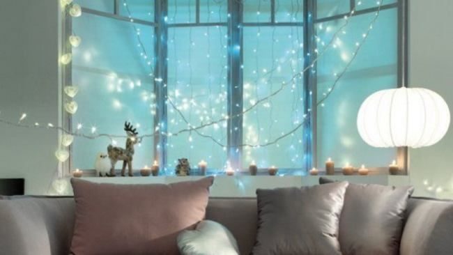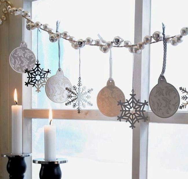 Преобразить дом поможет праздничный декор окон. Вариантов может быть множество: всеми любимые яркие гирлянды и свечи, бумажные звезды, снежинки и домики, которые можно вырезать вместе с детьми. Оригинально украсить окна помогут еловые шишки и имбирные пряники, которые кроме праздничного настроения наполнят дом приятным ароматом. А может быть, вам по душе наклейки и рисунки на окнах, или же вы отдадите предпочтение классическим новогодним шарам?