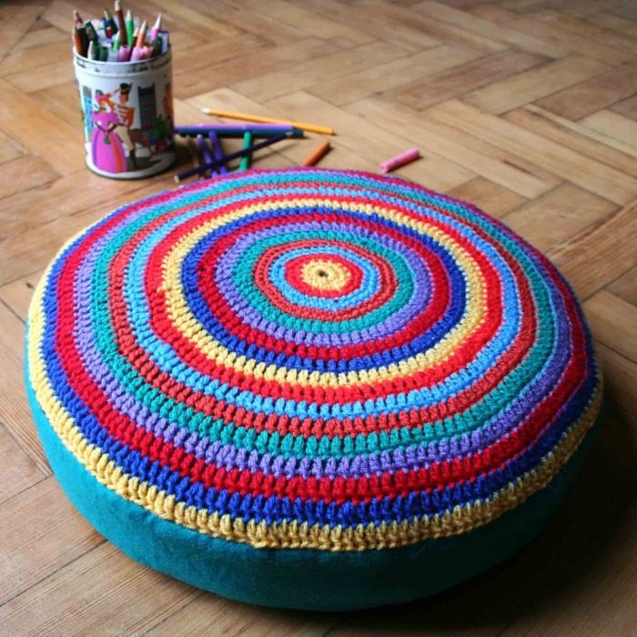 Красивый пуфик из старой автомобильной шины, который станет главным украшением в доме.