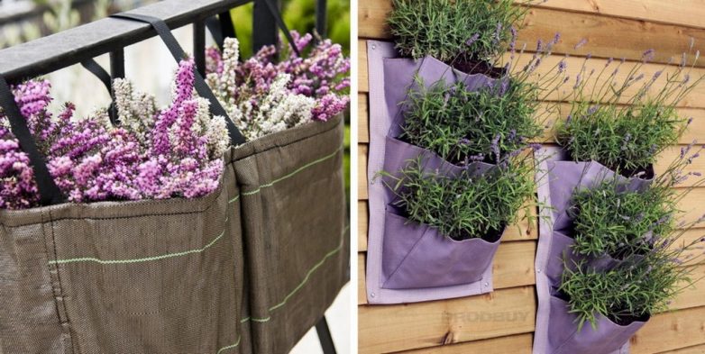 Чтобы украсить свой забор или стены дома растениями, можно взять за идею кармашки с цветами. Для этого вы можете купить уже готовый органайзер или сшить своими руками и посадить в кармашки небольшие растения в горшках.