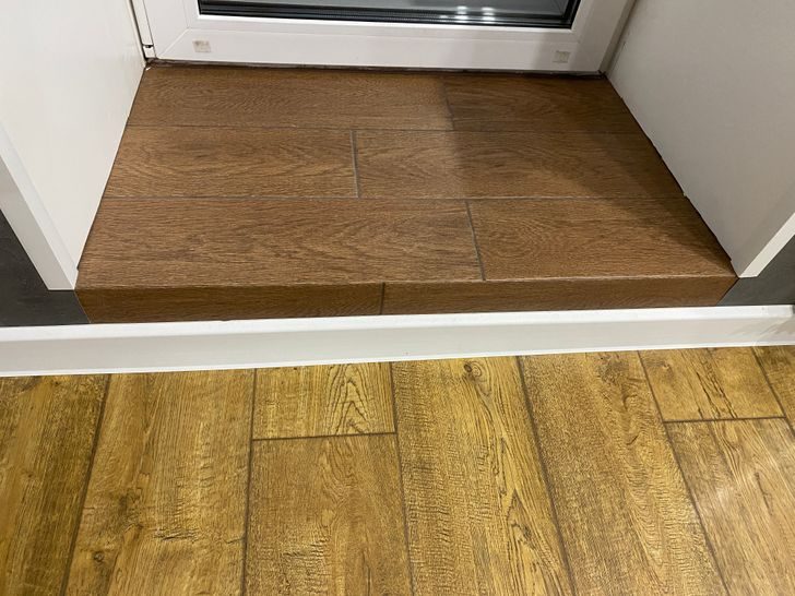 От прошлого ремонта осталась плитка, которую было жаль выбрасывать. В итоге применение ей нашлось — положили на порожке перед балконом. Только теперь разница сильно бросается в глаза.