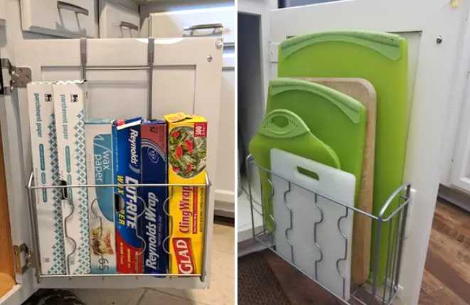 Простой держатель, который раньше использовали для хранения журналов и газет, пригодится вам в любой комнате. Установите его на дверцу тумбочки или шкафа, чтобы расположить в нем необходимые мелочи.