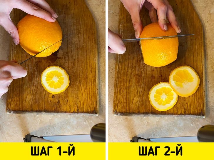 Чтобы облегчить эту задачу, положите апельсин на разделочную доску и отрежьте верхнюю и нижнюю части. Затем разрежьте апельсин до сердцевины. Теперь пальцами раскройте плод как книгу. Снимите дольки апельсина с кожуры и съешьте их. Этот же метод подходит и для мандарина.