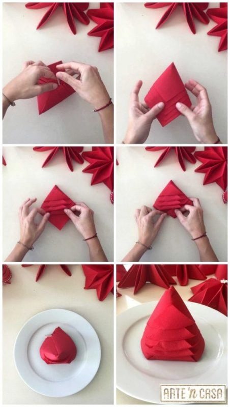 Вы все еще ищете как же красиво, просто и быстро украсить праздничный стол? Тогда эти простые инструкции по складыванию салфеток могут быть для вас отличным решением: вы можете мгновенно создать маленькую елку или милую звезду.