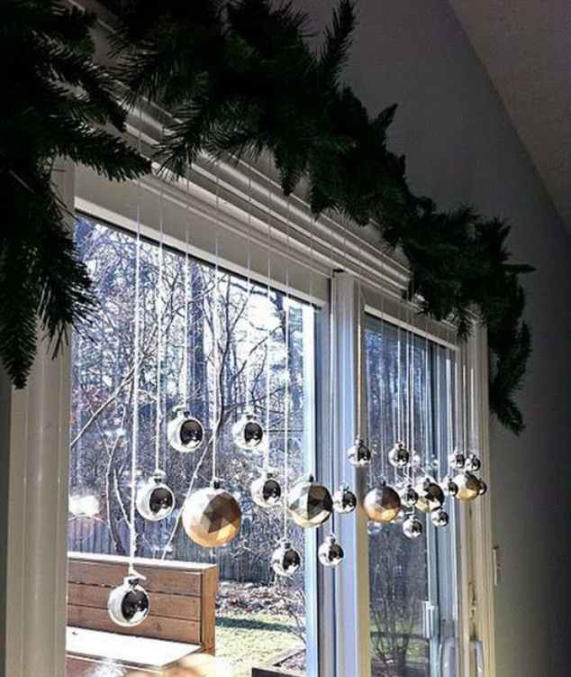 Новогодние шары украшают не только елку. Их можно покрасить в любой цвет и аккуратно прикрепить к окну. Домочадцы и соседи обязательно оценят этот декор.