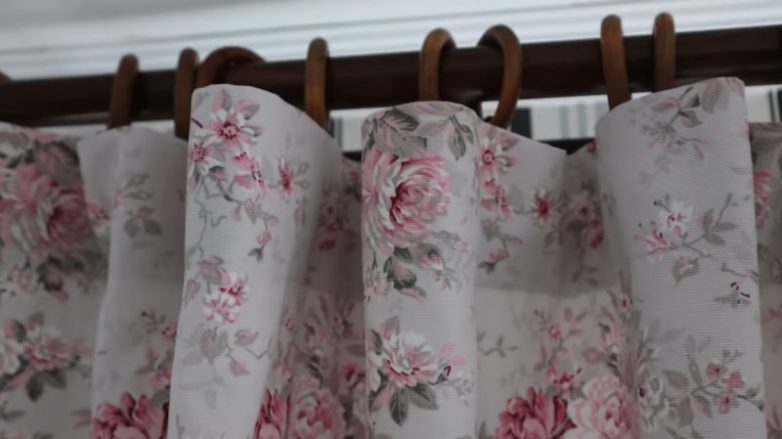 Если к шторе уже пристрочена лента, то вы легко сможете получить красивые складки. Для этого при креплении крючков следует одним крючком зацепить две петли на ленте.