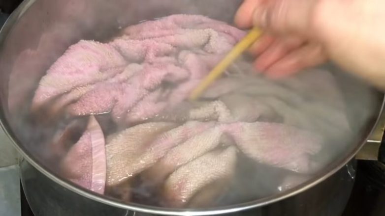 Добавьте 1 таблетку в кастрюлю минимум на 5 л воды, доведите до кипения, положите грязные полотенца, прокипятите 10 минут, выключите. Остудите воду, полотенца простирайте в стиральной машинке, как обычно — и на них не останется ни пятнышка.
