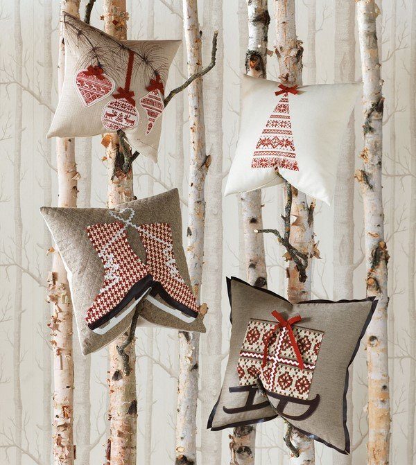 Они создают праздничное настроение, даже если лежат на обычном диване. Также можно принести домой несколько веток и украсить их подушками. Декор в этом случае заиграет другими красками.