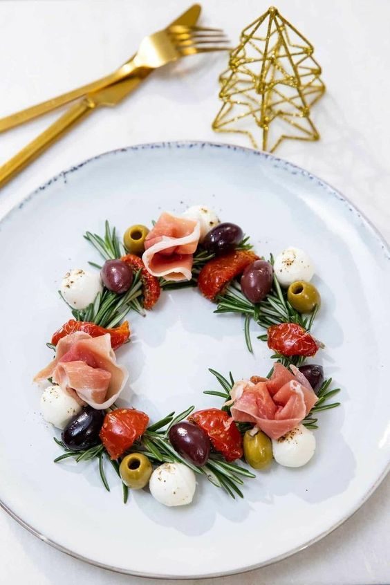 При правильной подаче самые обычные закуски могут превратиться в настоящее украшение праздничного стола. Идеальным вариантом для Нового года станет подача закусок в виде красивых венков.