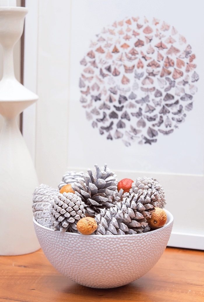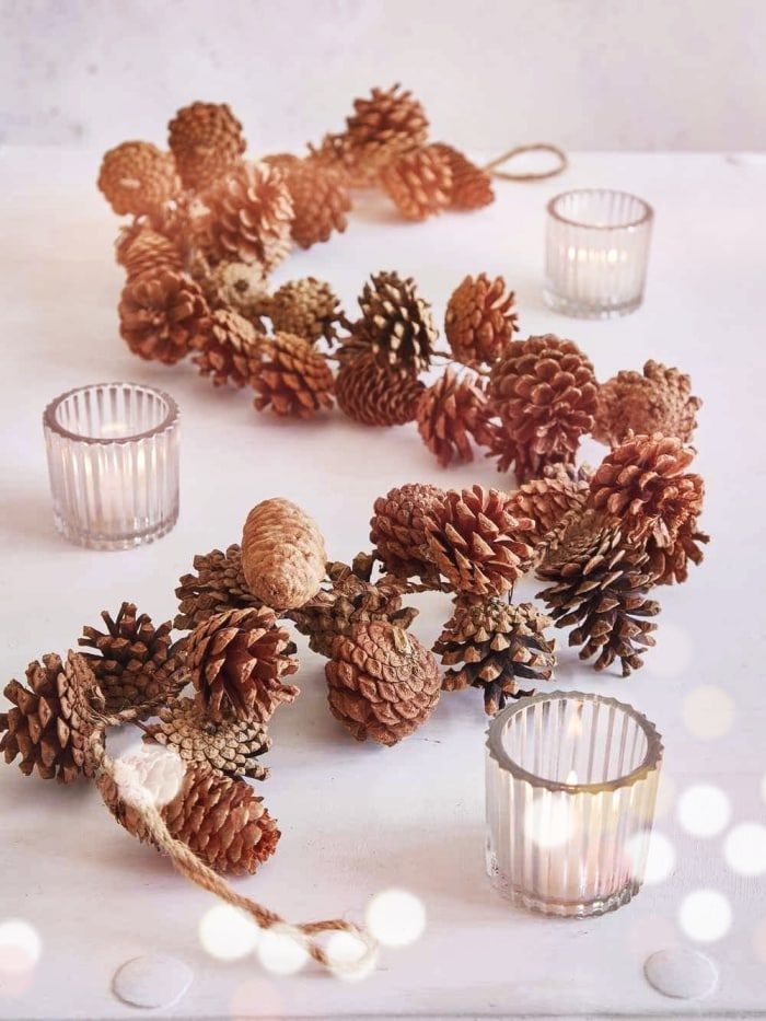 Просто уложите шишки в прозрачную вазу и добавьте фонарики, смастерите из шишек небольшой венок, соберите из шишек симпатичную гирлянду, и ваш дом преобразится!
