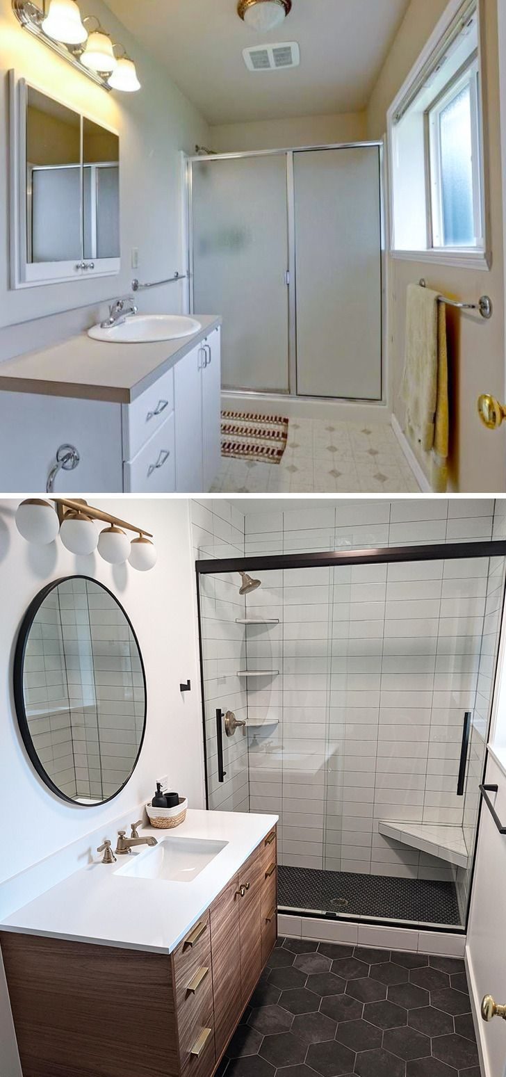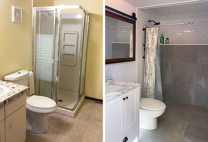 «До и после ремонта ванной комнаты в моей крошечной квартире»