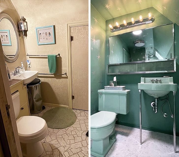 «Ремонт в стиле ретро! Я превратила свою уродливую дамскую комнату в шикарную ванную»