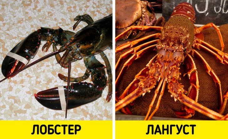 Оба этих морских животных относятся к одному виду ракообразных. А в приготовленном и приправленном виде они получаются весьма похожими на вкус. Отличить их друг от друга можно по клешням. Лобстеры — гордые обладатели больших жестких клешней, похожих на тиски, а вот лангустам достались одинаковые тоненькие ножки.