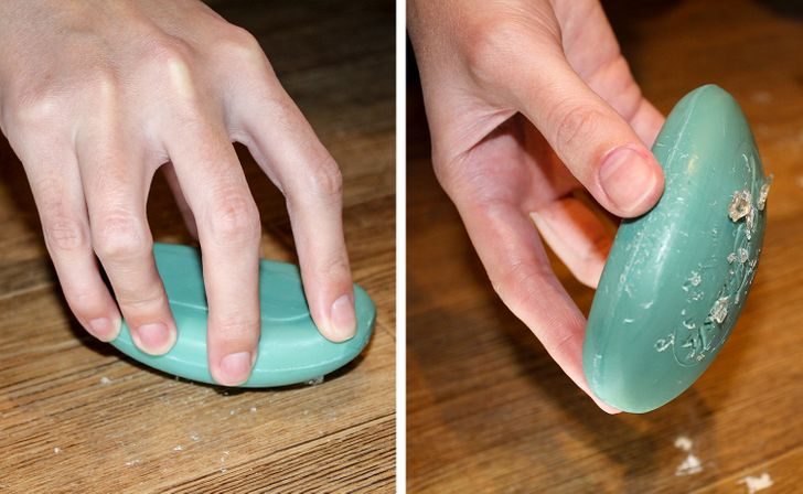 Мелкие осколки стекла с пола можно собрать с помощью кускового мыла