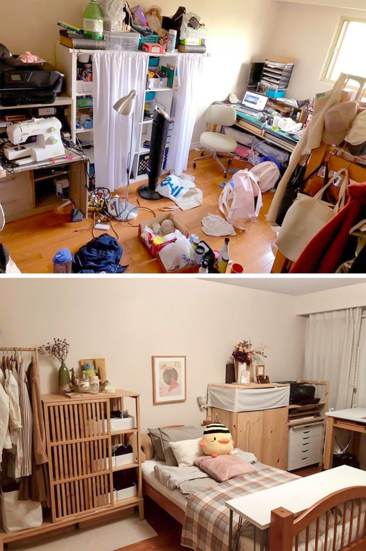 Я долго не могла выбросить обрывки ткани, старые школьные задания, одежду, которая не в моем стиле, инструменты для рисования, которыми не пользовалась — ведь все это когда-то было частью моей личности. На обычную уборку мне бы не хватило и недели. А мне хотелось, чтобы в моей комнате было место для шитья и много пространства. Я распланировала отдельные «дома» для всех вещей, которые мне действительно нужны, и теперь, даже когда в моей комнате беспорядок, его можно убрать за час. И главное — это пространство, которое я действительно люблю!