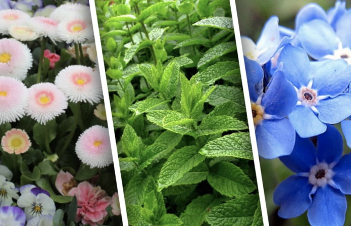 Анютины глазки, или виолы, миниатюрные, морозостойкие и совсем не капризные. Они спокойно уживаются в соседстве с другими растениями и высаживать их можно как весной так и осенью.